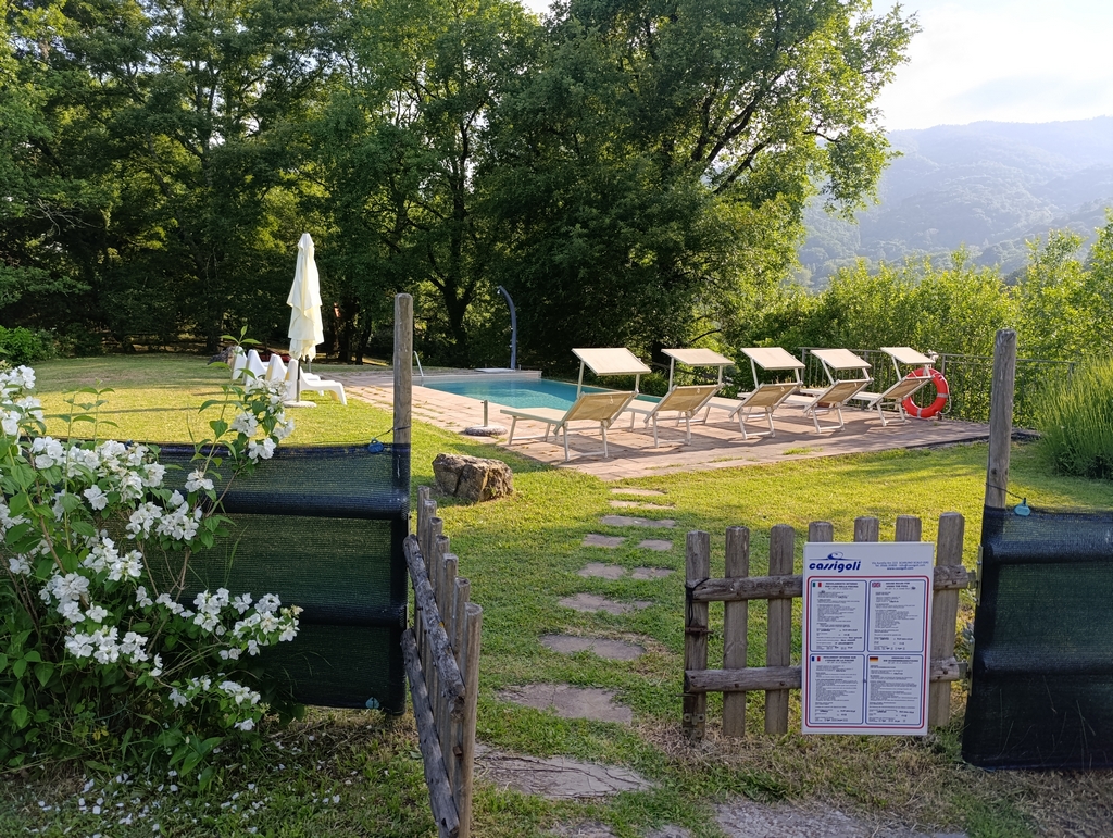 A disposizione degli ospiti un forno a legna per preparare pizze, un barbecue per piacevoli grigliate all’aperto, e una piscina 4×8 metri dove rinfrescarsi nelle giornate più calde. Non manca un comodo parcheggio per le auto.